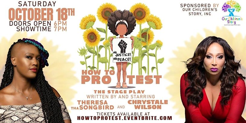 Flint River Community Center’s Black Box Theatre in Riverdale, Georgia is excited to announce the return of the premier stageplay HOW TO PROTEST written by and starring the incomparable Chrystale Wilson, and international spoken word artist- Theresa tha SONGBIRD. This captivating play explores the boundless forms of humanity, experienced in a day at protest.
